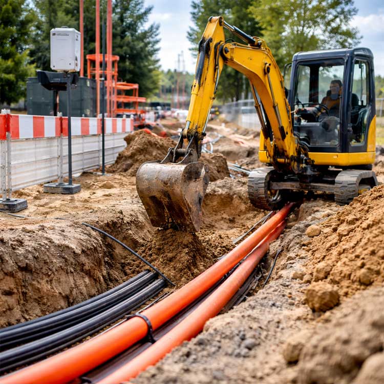Der Ausbau von Glasfaserinfrastruktur bildet den Kern unserer Tätigkeit. Wir realisieren Trassenbau, verlegen Leerrohre und sorgen für fachgerechte Hausanschlüsse (FTTH). Unser Ziel ist es, die Grundlage für leistungsstarke und zukunftssichere Netzwerke zu schaffen.